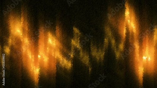 The watermark will not be included on Sticker.: Dark background with a play of light - motion - green and orange rays run in spots along the wall in c