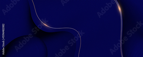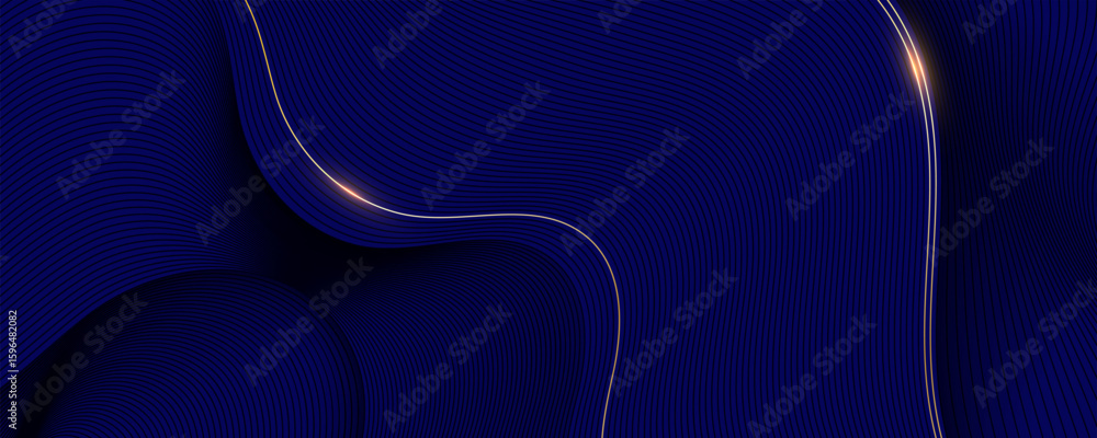 The watermark will not be included on Sticker.: Dark blue abstract wave background with light lines and 3d curved design