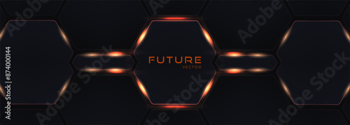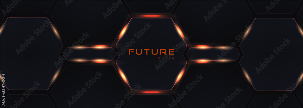 The watermark will not be included on Sticker.: Dark hexagon gaming abstract vector background with orange colored bright flashes - hexagonal gaming