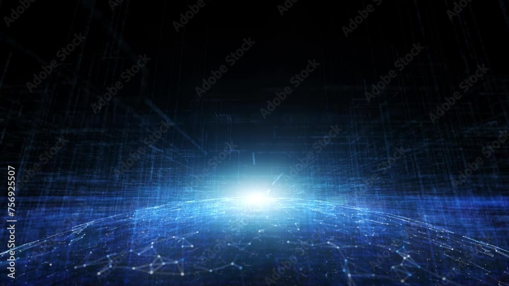 Sticker : Dark shining cyberspace network with 3d sphere loop rotation copy space animation -