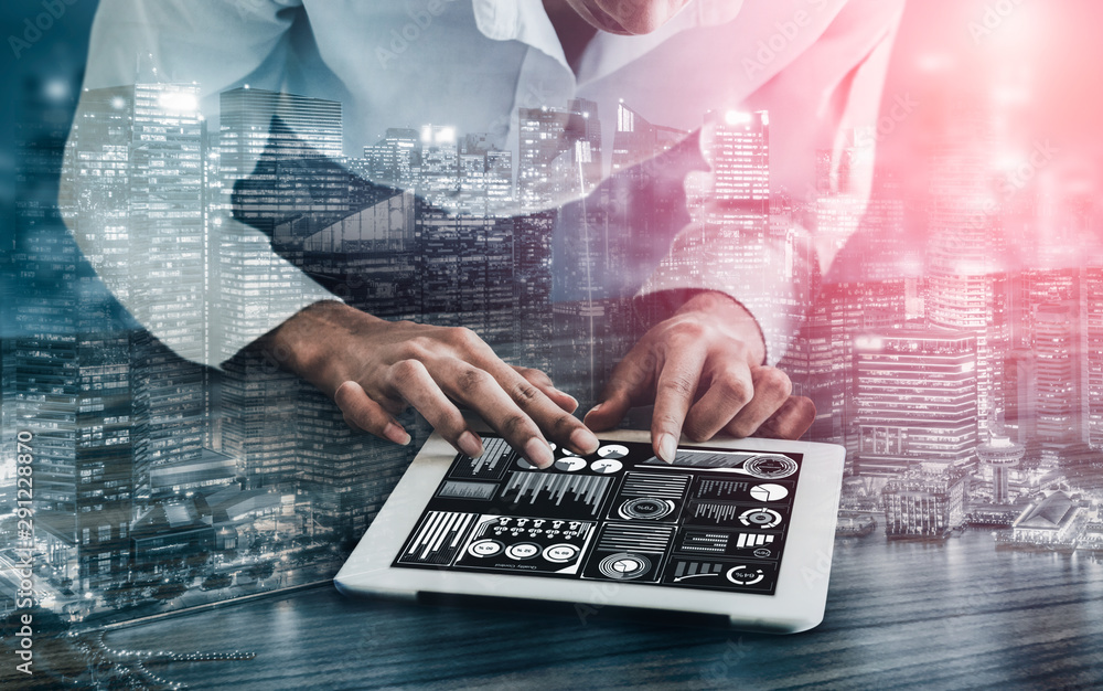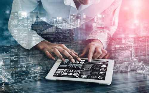 Sticker data analysis for business and finance concept. graphic interface showing future computer technology
