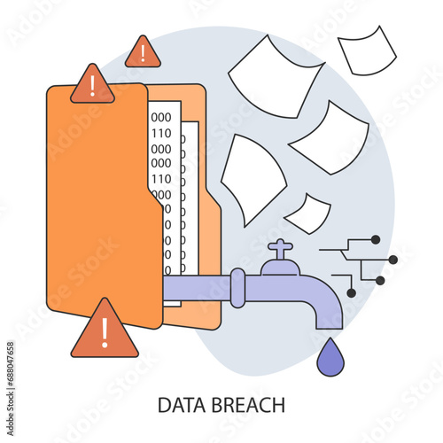 Sticker data breach or leak. confidential information database breakout. cybersecurity threat. hacker got ac