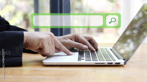 The watermark will not be included on Sticker.: Data search technology, the human hand using the keyboard to search for information on the website,