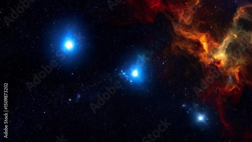 The watermark will not be included on Sticker.: Deep space background with bright star cluster and glowing nebula cosmic clouds in the distance