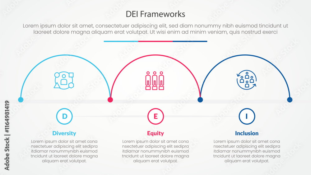 Dei frameworks infographic concept for slide presentation with half circle outline horizontal directSticker
