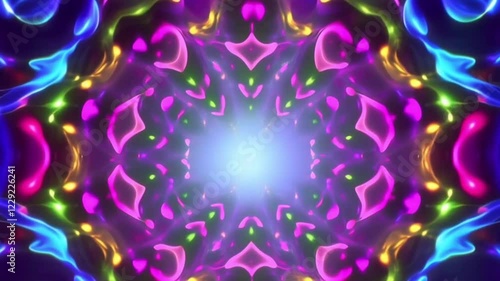 Sticker design a dynamic loop where color drops drift and expand within the oil and water, forming intricate