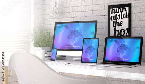 The watermark will not be included on Sticker.: Devices collection workplace with website responsive design