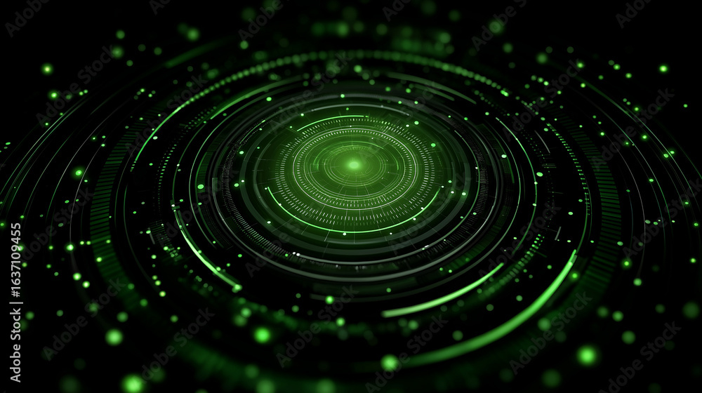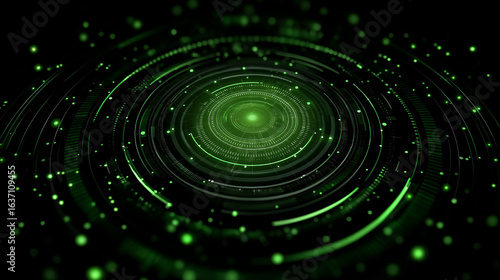 Sticker : Digital energy flow: a mesmerizing display of interconnected green energy circles radiates with an e