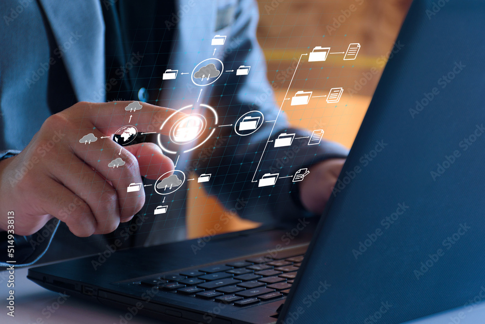Digital file management concept - businessman are accessing big data storage on internet, digital stoSticker