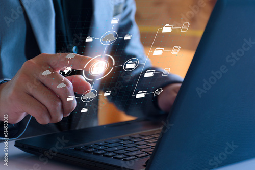 Sticker digital file management concept. businessman are accessing big data storage on internet, digital sto