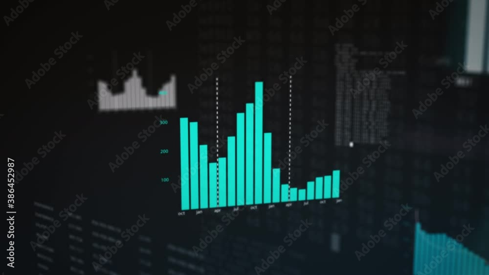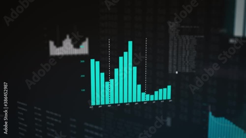 The watermark will not be included on Sticker.: Digital flight through info-graphics, stock market, digital graph abstract technology ui futuristic