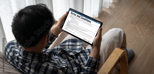 Sticker : Digital legal contract provide terms and conditions document on computer screen ready for online dig