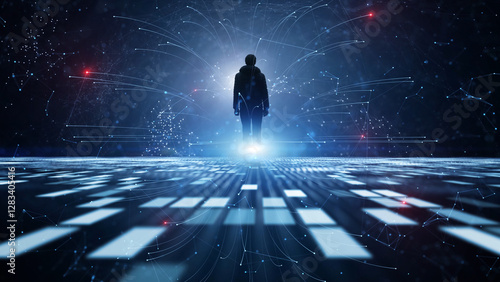 The watermark will not be included on Sticker.: Digital technology cyberspace network with a businessman illustration -