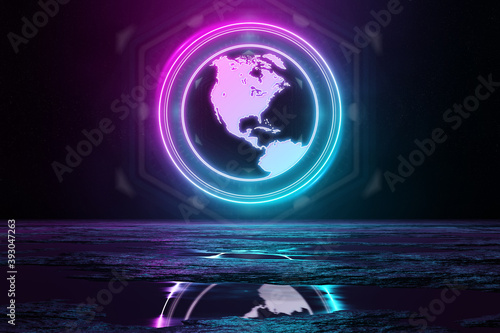 Sticker digital web holographic icon illuminating the floor with blue and pink neon light 3d rendering - Stickers Sticker digital web holographic icon illuminating the floor with blue and pink neon light 3d rendering - Stickers