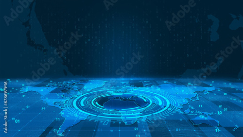 The watermark will not be included on Sticker.: Digital world business data technology world background