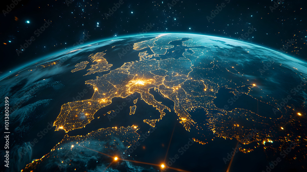 Sticker : Digital world map planet earth space global globe sky space 5g wireless network ai big data communic