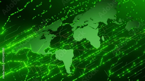 Digital world map with glowing green network connections on a dark background - futuristic technologySticker