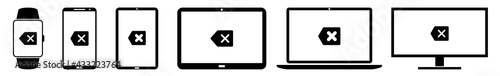 The watermark will not be included on Sticker.: Display cancel, delete, arrow, remove, text, back icon devices set | web screen device online | lapt