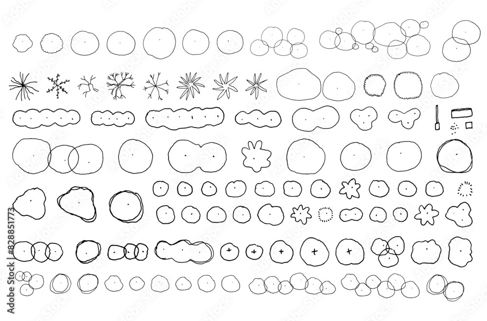 The watermark will not be included on Sticker.: Doodle vector tree top view isolated on white background for landscape plan and architecture layout