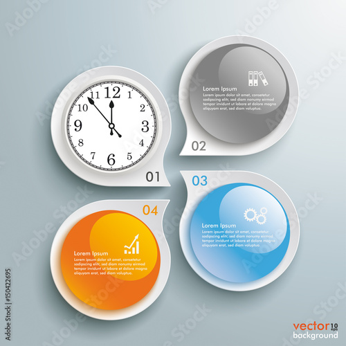 The watermark will not be included on Sticker.: Drops shapes glossy buttons 4 options clock