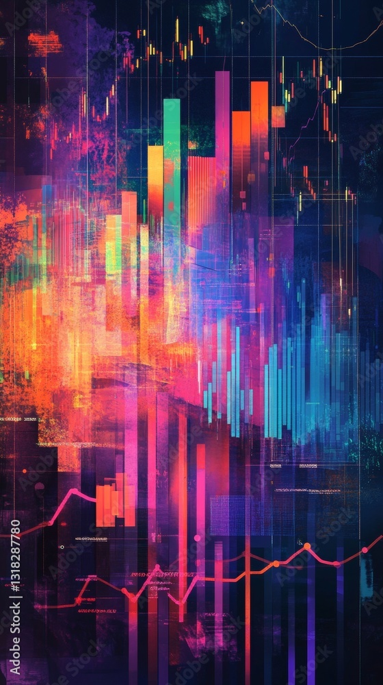 The watermark will not be included on Sticker.: Dynamic abstract digital visualization with vibrant colors and graphical elements in modern art