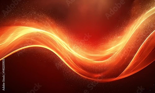 The watermark will not be included on Sticker.: Dynamic abstract light waves with shimmering flow and radiant sparks on a rich red background evokin
