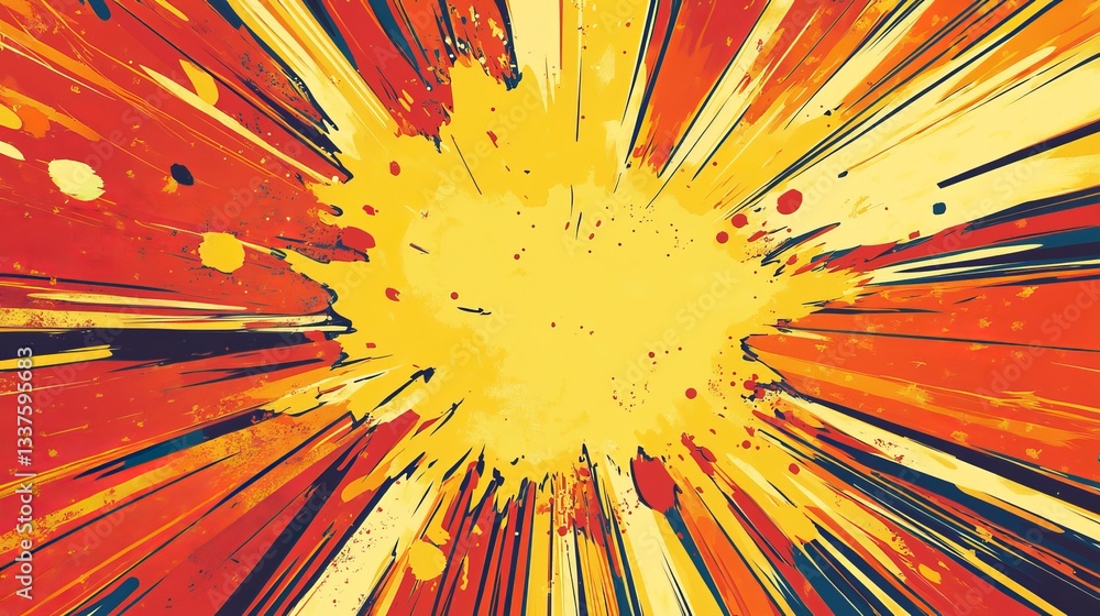 The watermark will not be included on Sticker.: Dynamic comic burst background with radiating speed lines and explosive energy effect in vibrant pop