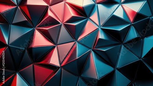 The watermark will not be included on Sticker.: Dynamic metallic polygons abstract art digital design modern aesthetics close-up visual innovation