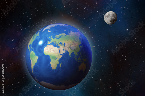 The watermark will not be included on Sticker.: Earth and moon - in outer space, cosmic background