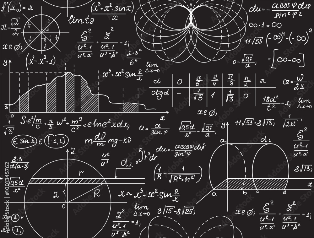 The watermark will not be included on Sticker.: Educational "back to school" vector seamless pattern with handwritten math and physics formulas, fig