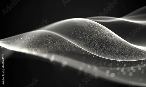 The watermark will not be included on Sticker.: Elegant waves of ethereal silk flowing in the dark with subtle light reflections and dreamlike parti