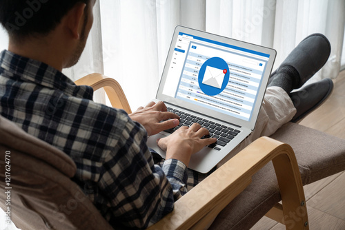 The watermark will not be included on Sticker.: Email notification message showing on computer screen snugly - digital marketing message information