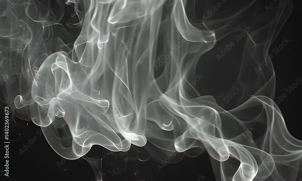 The watermark will not be included on Sticker.: Ethereal flowing smoke patterns on a black background creating an artistic and surreal atmosphere wi