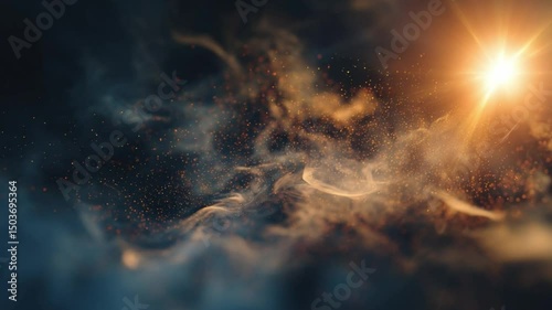Ethereal light rays dancing in a cloud of colorful particles and mystical fog in a dark backgroundSticker
