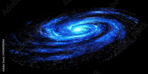 The watermark will not be included on Sticker.: Flat animated loop of a glowing blue spiral galaxy against black void