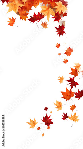 Sticker flowing maple leaves as a frame border, isolated with negative space for layouts