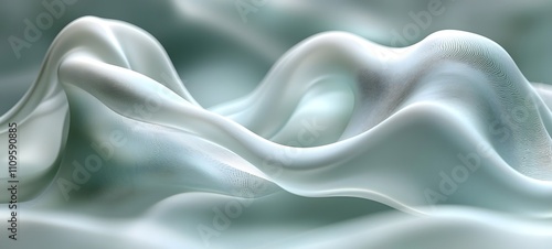 Sticker : Flowing translucent fabric waves in mint green creating an ethereal and serene abstract composition