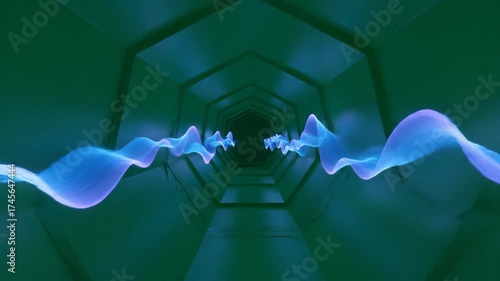 Sticker fluid light waves slowly pulsating through a hexagon tunnel on green screen modern, optical, animati - Stickers Sticker fluid light waves slowly pulsating through a hexagon tunnel on green screen modern, optical, animati - Stickers