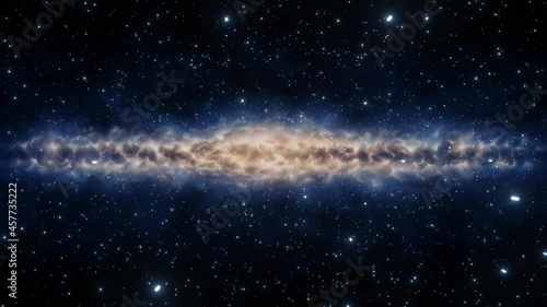 Flying in the universe through stars on a background of a galaxy seen horizontally - looping video - 3Sticker