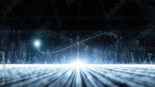 Sticker : Futuristic cyberspace road network with infinity symbol loop animation -