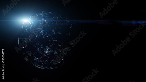 Sticker : Futuristic digital 3d plexus sphere with glowing light motion on clean black background -