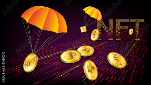 The watermark will not be included on Sticker.: Futuristic free distribution of collectible nft non fungible token with receding perspective on the