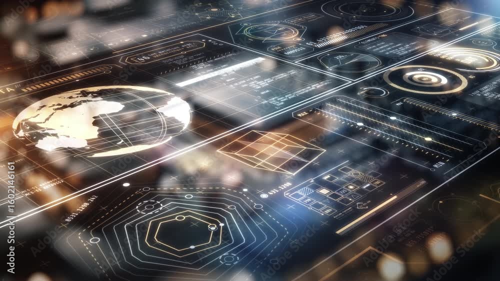 Futuristic global digital data processing interface showing a code flowingSticker
