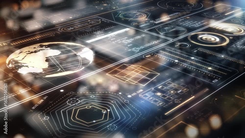 The watermark will not be included on Sticker.: Futuristic global digital data processing interface showing a code flowing