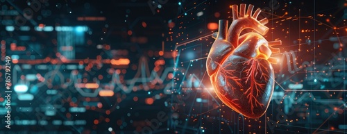 Futuristic human heart with data visualization lines, representation, 3d created with aiSticker