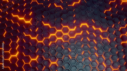 The watermark will not be included on Sticker.: Futuristic sci-fi hexagon surface pattern with offset effect background