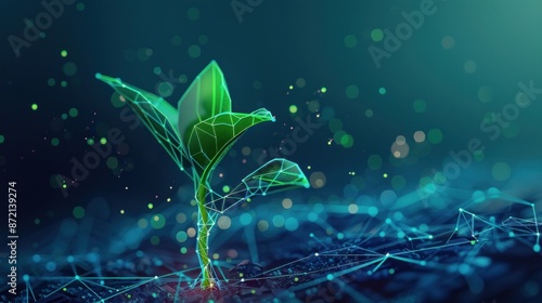 The watermark will not be included on Sticker.: Futuristic seedling growth with glowing polygonal light - generative ai image