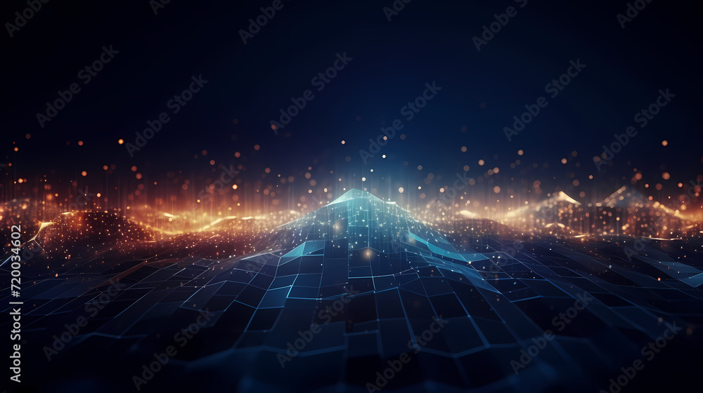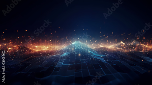 The watermark will not be included on Sticker.: Futuristic technology background of digital glowing waves and network system