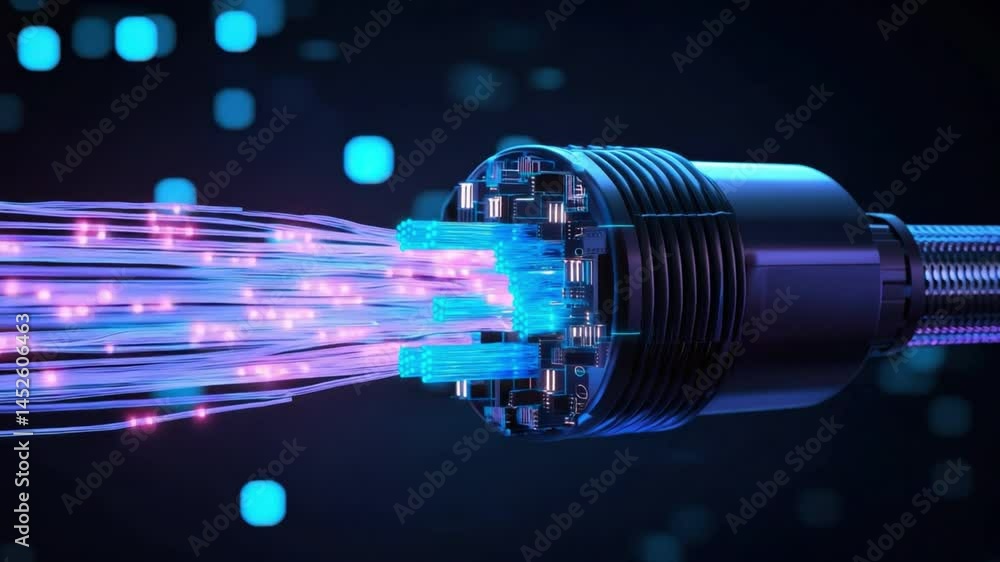 Futuristic technology concept with neon lights and digital circuitry representing data flow and connSticker