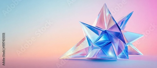 Geometric crystal shapes on gradient pastel background with copy space for text placementSticker